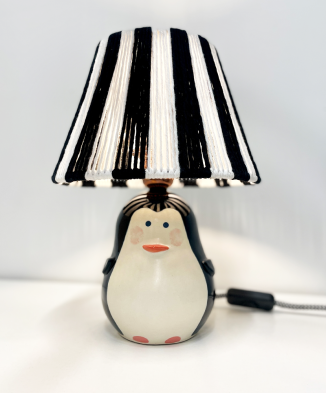 The now-iconic pig that has become inseparable from “Nerikomi”. This handcrafted ceramic lamp, shaped like an adorable pig, is a true gem for design lovers. Its soft, pastel color brings subtlety and elegance to any interior, while maintaining a playful piggy form. A charming extra touch is the handmade lampshade, which can be customized to your liking. Choose a simple string lampshade in any color you prefer, or go for a special, whimsical one made just for the pig by the amazing Kasia Kostiuk from “Illuminos”. The lamp’s structure is carefully designed and reinforced for durability. It’s made with high-quality craftsmanship: a metal light socket, a natural braided cord, and a felt-lined base to protect your furniture from scratches.